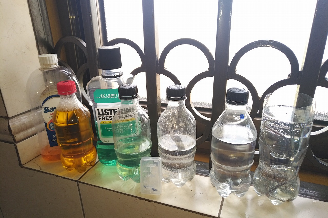 という感じで、旅先ではペットボトルをいくつか準備して、出張グッズを現地で作ります。ずっと同じ宿に滞在する仕事は良いのですが、連泊が少なく1-2泊で移動を続ける仕事の場合は、この準備が面倒に思ったりもします。
